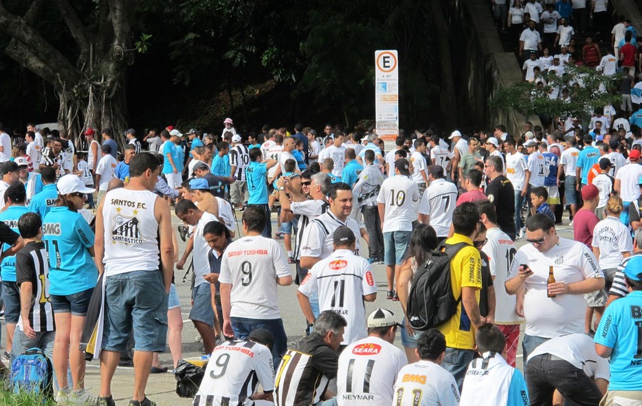 Antes do jogo, torcida do Santos e aglomera na frente do Pacaembu. Clima de festa
